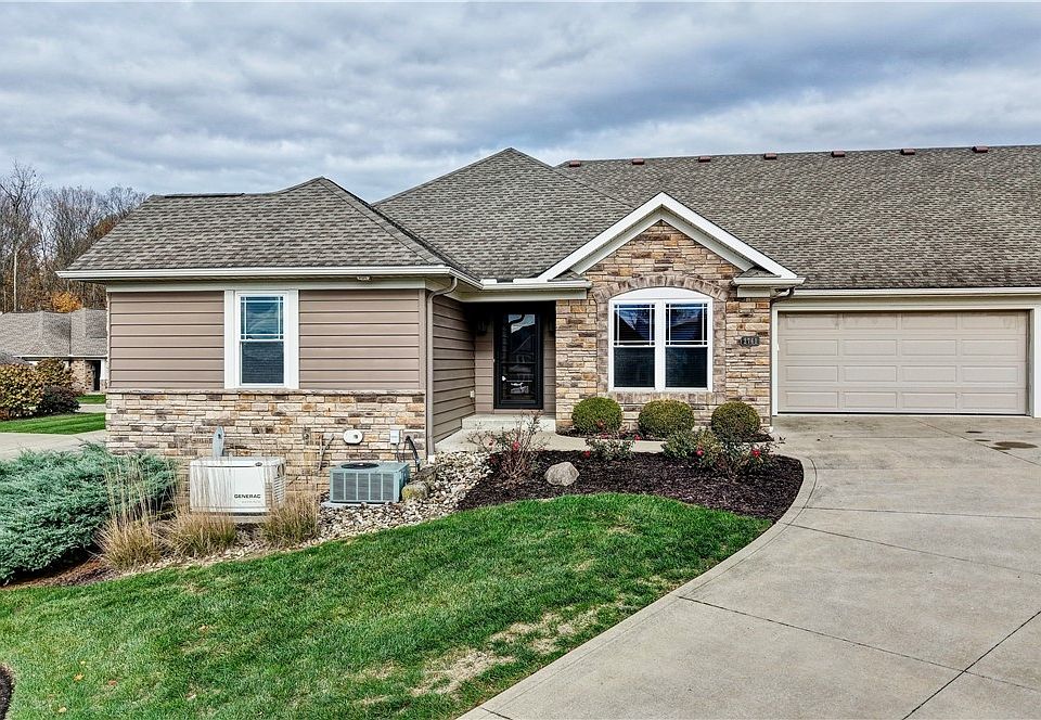 Welcome to this well-kept condo at The Cove in Walnut Creek! The main level offers an inviting open-concept layout where the living room, dining area, and Schrock's kitchen flow together beautifully—perfect for both everyday living and entertaining. The cozy living room fireplace brings it all together, creating a warm and inviting space to relax and unwind. The home features a guest bedroom and full bath, plus a spacious master suite complete with its own full bathroom and walk-in closet. Convenience is built in with a laundry/mudroom off of the attached 2-car garage, and a full basement- with built in shelving great for storage and a shuffleboard area perfect for entertaining. Mechanics include city water and sewer, a gas furnace, central air, a whole house Generac, gas hot water heater and central vac. Enjoy easy living in a great community setting with a layout that truly feels like home.