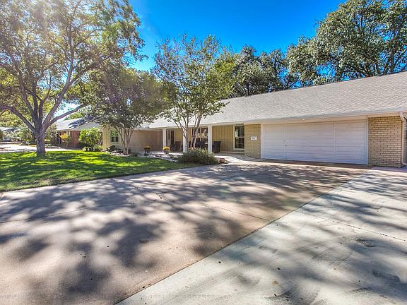 This meticulously maintained mid-century home is located in the highly sought-after Bryant Park neighborhood of San Angelo. Built in 1959 and cherished by only two owners, this 3 bed, 2.5 bath home offers 2,627 sqft of thoughtful updates, original character, and flexible living spaces. Inside, you'll find two living areas & two dining spaces, ideal for both everyday comfort and entertaining. The home features updated tile flooring, high-end carpet, and new windows installed in 2016. The main living space with stunning wood beams highlights the preserved original bricked fireplace, while the 1960s doors add a touch of timeless charm throughout. Out front, a long welcoming porch overlooks custom landscaping by Scherz Nursery. The property also includes a designated RV driveway complete with hookups – perfect for storing an RV or providing extra parking options. Located within walking distance to ASU & close to local favorites, this home blends classic style with modern updates.