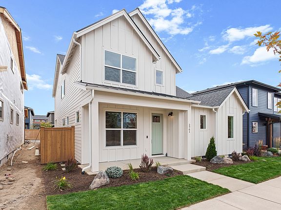 Modern farmhouse charm meets functional design in this beautifully crafted home. Main-level living features an open concept great room with a cozy gas fireplace and a stunning kitchen complete with quartz countertops, a spacious island, and a large pantry. The private main-level primary suite is thoughtfully separated from the living area. Enjoy indoor-outdoor living with a covered patio off the kitchen, leading to the backyard. A mudroom/laundry room connects to the alley-load two-car garage. Upstairs offers three bedrooms, a full bath with dual vanities, a versatile loft, and an additional den or 5th bedroom-perfect for guests, work, or play.