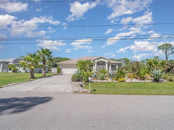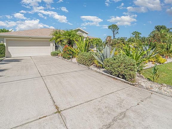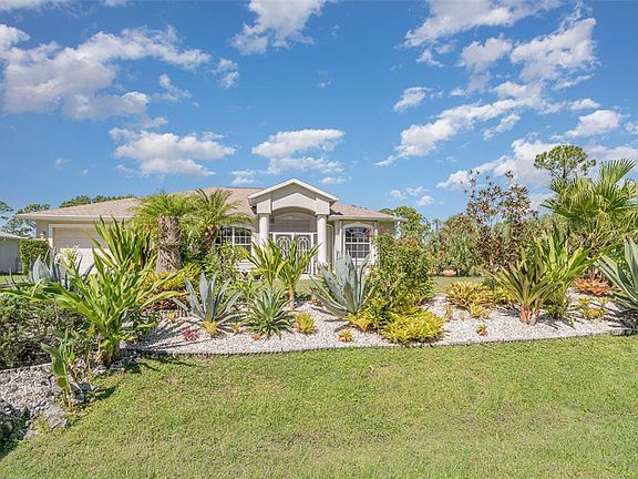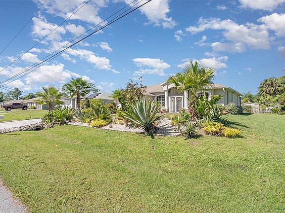 This quality built 3-bedroom, 2-bath, 2-car garage split-plan home is situated on two expansive lots, totaling 20,000 sq ft. The second lot offers the unique flexibility to either build an additional structure or maintain it for enhanced privacy. Boasting nearly 1,800 sq ft of luxurious living space, the home features a newer roof installed two years ago, a convenient large storage shed, and accordion hurricane shutters for superior protection. You'll be greeted by an eye-catching double-door, screened-in front entry. The thoughtfully designed interior provides ample room to spread out, with a separate formal living room and dining room. The bright, sunny kitchen overlooks the family room and breakfast nook, making it an ideal layout, especially for larger families. The kitchen is a chef's delight, offering abundant counter space, cherry wood cabinetry, a tiled backsplash, and a breakfast bar overlooking the family room—perfect for entertaining. A laundry room, conveniently located off the kitchen, includes a washer and dryer. The master bedroom comfortably accommodates all your furniture and features a master bathroom with dual sinks, a garden tub, and a walk-in shower. All three bedrooms boast generous walk-in closets. Both oversized guest bedrooms are part of a private guest suite, complete with a pocket door for added privacy when family visits. Enjoy the beautiful Florida weather from your private, screened lanai, which has three access points from the master bedroom, living room, and guest bath—a perfect setup for a future swimming pool. Additionally, a stone patio provides an ideal spot for barbecue picnics. The property showcases the seller's green thumb with beautifully planted flowering shrubbery, native plants, and tropical palm trees, including a mature sweet starfruit tree, all accented with rock borders and solar lighting. Additional amenities include a water softener, security system, and keyless entry. The septic system was pumped in 2023. The home's prime location offers easy access to the I-75 entrance, shopping, schools, and the Atlanta Braves training stadium. Plus, it's just a short 20-minute drive to Florida's beautiful tropical beaches!