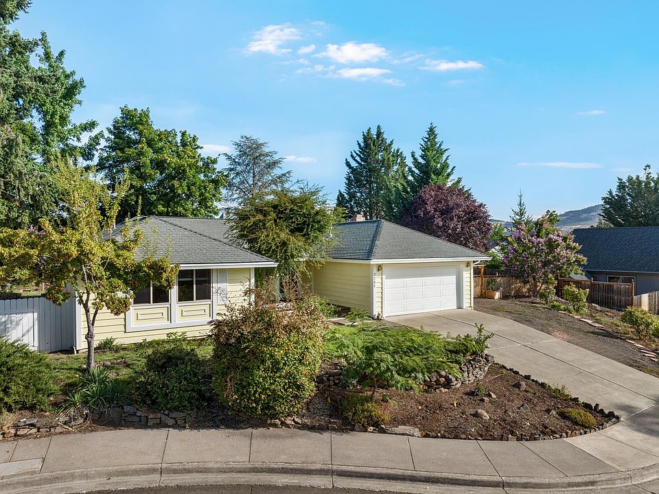 garage for parking and storage. The landscaped .23-acre lot has recently been upgraded with new fencing and includes an array of perennials and sprinkler irrigation. The property has been meticulously maintained and cared for — and boasts scenic views of Mt. Ashland and the surrounding valley. Located just minutes from Centennial Golf Course, Roxy Ann Peak, and other local favorites, this home is a great fit for anyone looking to enjoy peaceful living in a desirable neighborhood.