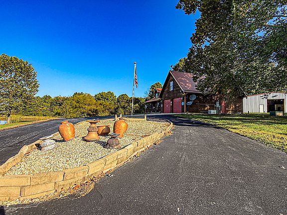 This beautiful cedar country home sits perched on a high point with stunning views of the surrounding land and countryside. Serenity will begin to set in as you take the paved driveway back to this magnificent country home. This spacious home has a ton to offer. It would be the perfect place for hosting family and friends' gatherings/events. The home has a lodge feel to it with the soaring ceiling height, the eye-catching stone fireplace, the wooded ceiling and the views from every window. The main floor offers a spacious open concept living from the great room to the dining area to the large kitchen with breakfast bar, a perfect place for hosting holidays. There is also 2 bedrooms, a full bath and laundry room on the main floor. Upstairs, you will find the owner's retreat. A massive bedroom with a full bath, walk in closet and a large bonus room that could be a rec-room, office, work out room, additional bedroom or make it into whatever you heart desires. Not only does the home come furnished, it has a backup Generac home generator. The covered front porch is ideal for sitting out, enjoying the sounds of mother nature and getting lost in the views overlooking the pond and countryside. The back deck is perfect for cooking out and having family gatherings. A large 50x50 metal frame building with concrete floor and electric provides lots of additional space for just about anything you can come up with. There are finished rooms for office space, deer processing, RV/tractor and equipment storage, work shop and much more. The land consists of a beautiful mixture of woods, pasture and water. The 1/2 acre stocked pond has been well managed and provides a great place to catch bass and hybrid bluegill or just simply a great spot to sit out and relax by. A screened in gazebo with electric, is an ideal area for picnics and sitting area.
