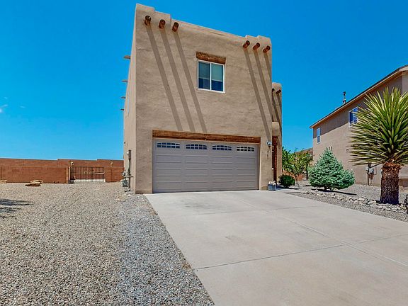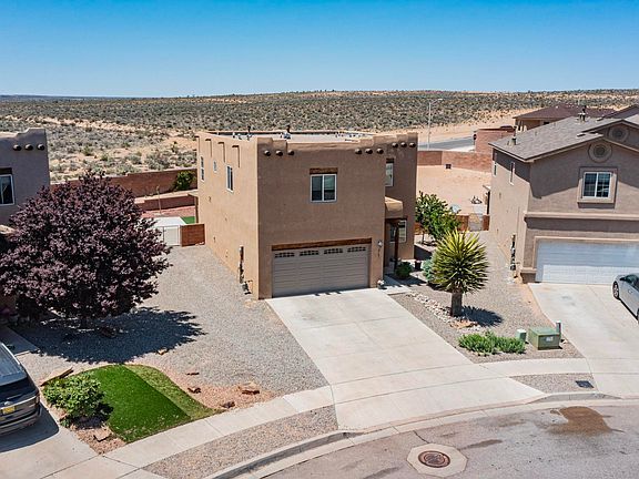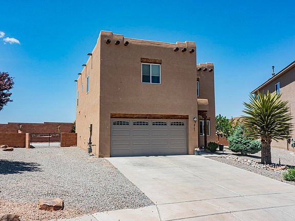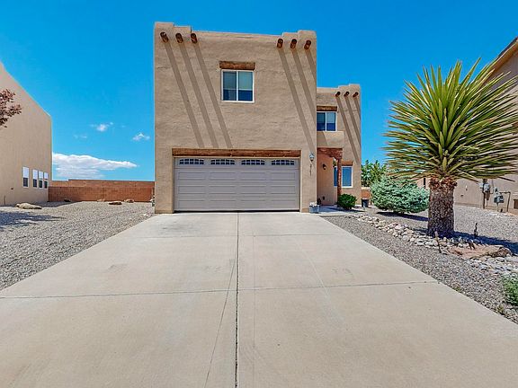 Located in Rio Rancho, this Pueblo style home features 4 bedrooms, 3 bathrooms, and a 2-car garage with large yard and backyard access. The two-story layout includes a loft, two living areas, and a primary suite with a walk-in closet and luxurious garden tub with double sinks, and separate shower. The kitchen is equipped with all appliances, including a gas stove and island. Washer and dryer are also included. Outdoors, enjoy beautifully landscaped yards and a large covered patio, ideal for entertaining. A gas fireplace adds a cozy touch to this enchanting Southwestern retreat.
