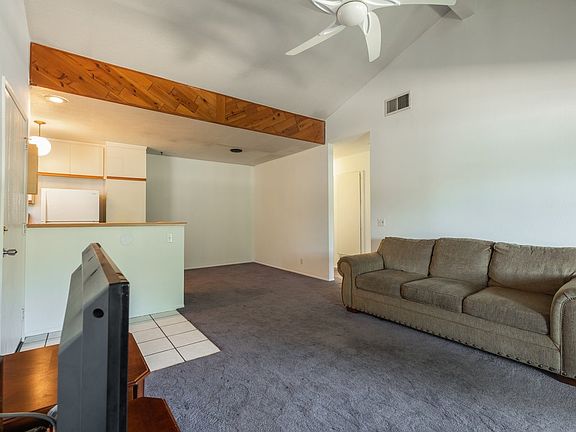 Every REX home comes with a 30-day buyback guarantee. Terms and conditions apply. Cozy 1 bedroom, 1 bath condo with 700 square feet in Santa Clarita! This light & bright second- floor unit is located in a quiet complex with beautiful grounds and walkways just minutes from all Santa Clarita has to offer. The living area has soaring vaulted ceilings which make the area feel extremely spacious. Large sliding glass doors access the charming balcony which has lovely hilltop views and an extra storage closet. The open floor plan flows seamlessly into the kitchen, equipped with ceramic tile flooring & countertops, wood cabinetry, dishwasher, double sink, and electric stove. You'll love relaxing in the large bedroom with carpet flooring, ceiling fan, and walk-in closet. The bathroom features laminate flooring, large mirror, and a shower/tub combo. In-unit laundry. Central A/C. One dedicated parking spot in complex. Great community with swimming pool and jacuzzi near tons of shopping, restaurants, hiking/biking trails, Central Park, excellent schools, and both the 5 and 14 freeways. HOA: $325/month and covers common area maintenance and community amenities. Don't miss this opportunity! *Please Note: This property is an asset in a BK proceeding, court confirmation will be be required, in order to successfully close escrow. Current estimated timeline is 30 days for the court confirmation process.