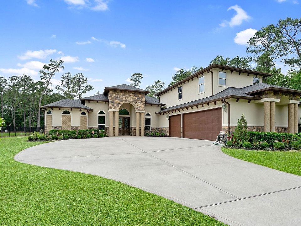 Welcome to this gorgeous custom home at Benders Landing Estates! Situated on an acre lot with 4 bedrooms, 3 full and 2 half baths, 3 car oversized garage. Spacious Dining and office with built-ins and wood beams on the ceiling. Open floor plan with travertine throughout living area. Chef's dream kitchen has 2 islands, granite countertops, stainless steel appliances, double oven, five burner gas range, oversized farmhouse sink. Large primary suite with his & hers closets and huge bath w/ separate tub, walk in shower. One guest suite has its own full bath. Upstairs game/media room with half bath. Tankless water heaters, water softener and filtration system installed. Backyard with covered patio, outdoor kitchen, fireplace and half bath, great for entertainment. New epoxy floor in garage. This house has it all. Club house access included with fitness center, large party room, pool, splash pad, tennis, soccer, basketball, baseball, etc. Easy access to I99, Hardy Toll, I45.