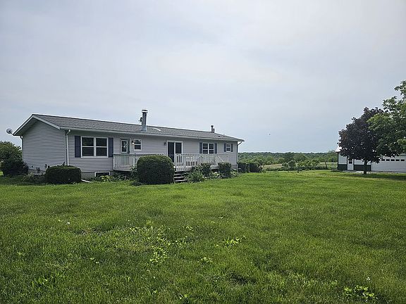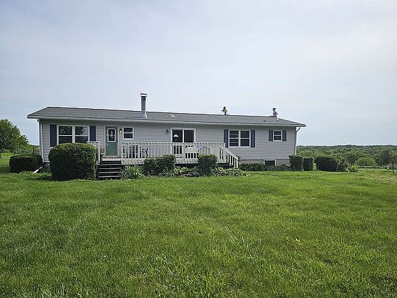 This private, ranch-style home and acreage is located just off Highway 14 between Knoxville and Chariton, nestled among timber, crops, pasture, and CRP boasting deer, turkeys, and quail. With an open layout on both the main floor and basement, along with a walkout access below, this house is spacious and comfortable. Skylights and windows provide plenty of natural light, with the largest picture window overlooking the acreage rather than the road. Two decks and a perfect firepit provide ample space for outdoor leisure, along with a generous yard, fruit orchard, and garden. A heated detached garage/shop - complete with workbench, bathroom, and sink - features four full-size parking spaces and stair-access attic storage. Located only 45 miles from Des Moines and 15 miles from either Knoxville or Chariton, this property ideally balances solitude and convenience.