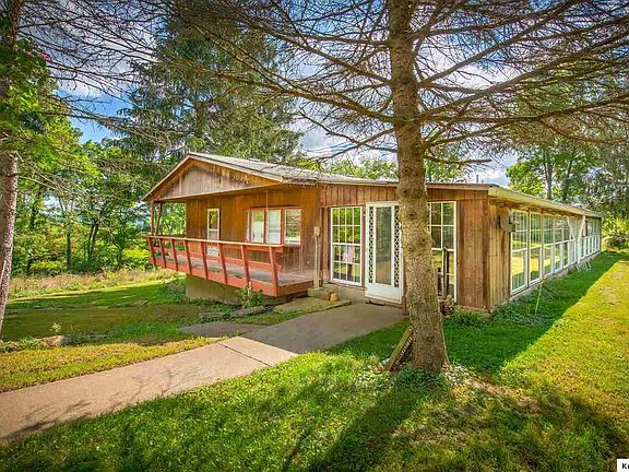 This could be your piece of paradise once you make the necessary updates. 1 bedroom, 2 bath ranch with wrap around porch. Home is in need of repairs and updates, but includes 9 secluded acres with woods and fields, and an outstanding barn with stalls, workshop, and loft. There is an additional implement building and shed. Road frontage on 2 roads. Being sold in as is condition. Cash or 203 financing