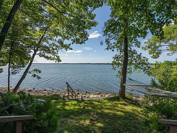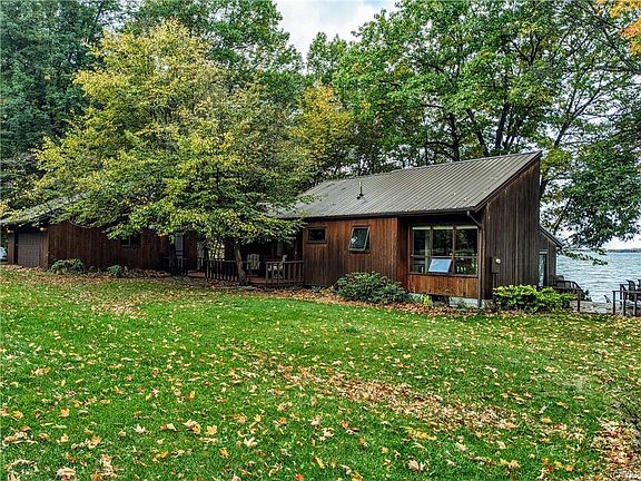 RARE LAKEFRONT FIND!!! One of the always sought after 5 acre lakefront properties on the North shore of Three Mile point! Come tour this 4 bedroom 2 bath Ranch home nestled in the trees with Guest House, garage and is totally year round! Cedar Home boasting approx 1300 SF on main floor, 2 bedrooms, full bath, spacious living room with Gas Fireplace and incredible views! Cozy kitchen with breakfast bar, dining area and 2 balcony's and large deck! Additional 700SF of finished living space to include 2 bedrooms and full bath in basement area plus tons of storage and utility room. Cute guest house that is totally separate and nestled in the trees! 2 car garage and paved driveway! All this situated on 5 acres and almost 400' of lakefront!!! Just incredible! Waterfront perfect for swimming, kayaking, fishing and boating! Sunsets are amazing and privacy galore! That is what you are paying for.....Truly a rare find and will not last, call today!