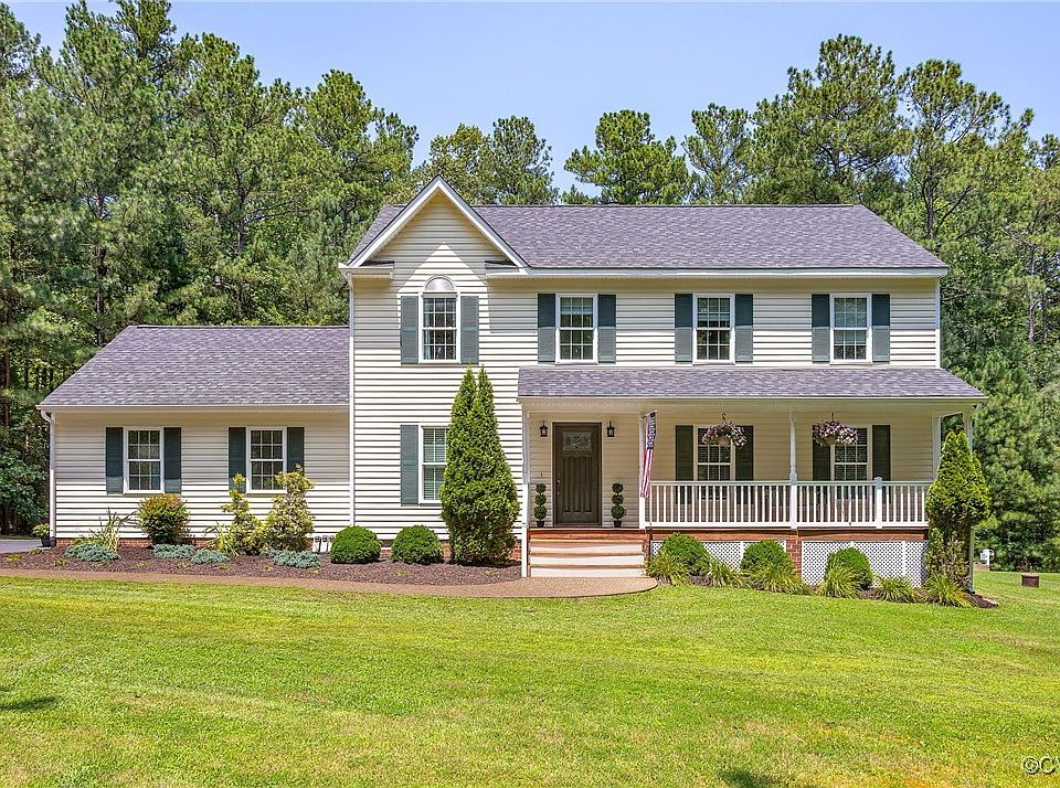 Welcome Home to your PRIVATE retreat nestled on over 3 park-like acres in the desirable High Grove Community in Goochland. This well-maintained four-bedroom 2 1/2 bath transitional home offers over 2000 sq ft of living space plus a fabulous SUNROOM not included in the square footage. There is ample room for family living and entertaining inside and out! This lovely home offers an updated eat-in kitchen with granite countertops, tile backlsplash, stainless steel appliances and undercabinet lighting. Not to mention a lovely view of the gorgeous backyard pool and hardscapes. From the kitchen walk over to the living room complete with tile fireplace. Built-in bookshelves allow for your favorite accessories. Not counted in the square footage is the SUNROOM (2005) with access to the living room and deck! The formal living room can be used as an office or a separate seating area. PELLA windows were added in 2020. Enjoy holidays in the formal dining room off the kitchen. Upstairs you'll find a dedicated laundry room convenient to the bedrooms. The primary bedroom offers a WALK-IN CLOSET and en-suite bath with newer countertop and fixtures. You'll find plenty of extra storage in the walk-up attic. The spacious newly paved oversized driveway leads into a finished side-entry 2-car garage. Take advantage of the workshop in the shed, complete with electricity. ENCAPSULATED CRAWLSPACE! NEW ROOF 2024! Xfinity Comcast available. Newer HOT WATER HEATER. Bring your canoe and fishing rods to the community lake or have a picnic at the picnic tables. Highlty-rated Goochland schools. All information deemed accurate but please verify. Shed, chimney, firelplace, flue, pool equipment, convey as-is with no known defects.
