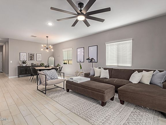 MOUNTAIN VIEWS! Step into refined comfort and modern elegance with this charming residence recently built in 2022! This property welcomes you with upgraded landscaping, adding a touch of curb appeal to its inviting facade. Step inside to discover a thoughtfully designed interior, where spacious living areas and stylish finishes create an atmosphere of warmth and sophistication. The open-concept layout offers seamless flow between the living, dining, and kitchen areas, perfect for both casual gatherings and formal entertaining. Retreat to the serene primary suite, complete with a well-appointed ensuite bathroom and ample closet space. Outside, the backyard oasis awaits, with a covered patio and space for outdoor dining or enjoying the Arizona sunshine, complete with an upgraded backyard Located in a desirable Phoenix neighborhood that was on a lottery system, this home offers convenience and comfort at an unbeatable value.