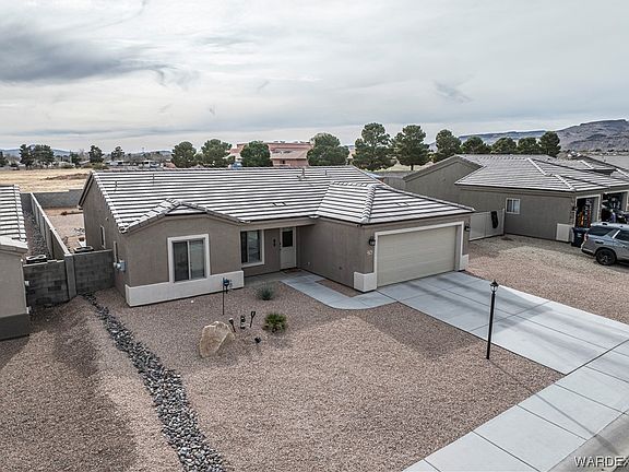 Welcome Home * This Beautiful Home Features a 63 x 155 Lot * Desert Landscaping in Front and Back Yard * Indestructible Views of the Hualapai Mountains * 6800 Watt Solar System so NO Electric Bills * RV Parking with Hookups ( 50 mps * water * sewer) 675 sf Full Length Concrete Patio * Home is Split Floor Pan with Tile Flooring Throughout * Granite Counter Tops * Upgraded Cabinets (doors * dovetail drawers * soft close hinges * Pantry with Extra Outlets * Window Coverings and Ceiling Fans in All Rooms * Linen Closets & Storage in Laundry Room * Fully Insulated Garage and So Much More!