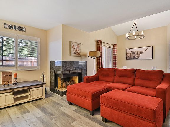 Welcome to this rarely on the market Oakridge Terrace Condo located just below the entrance to beautiful Big Sky. This attractive move in ready home boasts 2 beds, 2.5 baths with approximately 1232 sq ft of living space. As you walk into this well cared for home, you will notice newer vinyl wood flooring and dual paned windows throughout providing a very clean look with tons of natural light! The open living and dining room concept offers a granite tiled fireplace and sliding door to your private patio. Kitchen has granite countertops, built in stainless steel microwave and plenty of storage/cabinets. Downstairs also has a powder room for guests. Upstairs you will find 2 spacious bedrooms with high ceilings, laundry area, and 2 full bathrooms with en suite master bath having dual sinks. Home is equipped with a TWO car garage with DIRECT ACCESS. This is a great location as its close to the 118 freeway and Simi Valley Town Center. Complex has community pool and spa with guest parking and paid for trash services. This property provides features condo owners prefer and will not last long!
