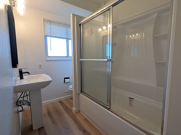 New fixturesModern designRefreshed bathroomExposed ceiling beamsLaundry hookups