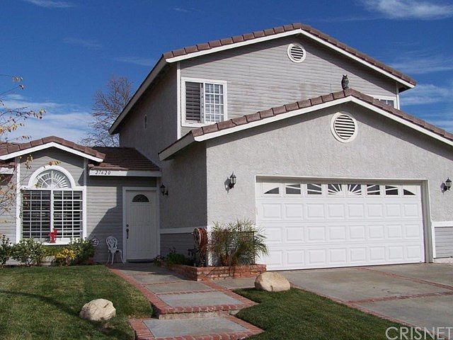 GORGEOUS 2 STORY, 3 + 2.5 HOME IN A SMALL CUL DE SAC IN CASTAIC NORTH BLUFF. WOOD LAMINATE FLOORING DOWNSTAIRS, DECORATOR PAINT COLORS AND PLANTATION SHUTTERS THROUGHOUT. KITCHEN HAS GRANITE COUNTERS AND A BREAKFAST BAR. FAMILY ROOM OFF THE KITCHEN FEATURES A COZY FIREPLACE AND FRENCH SLIDER TO BACK YARD. CENTRAL HEATING AND AIR, SOLAR PANELS. PRIVATE BACKYARD AND 2 CAR ATTACHED GARAGE. FREEWAY CLOSE. NO HOA, NO MELLO ROOS.
