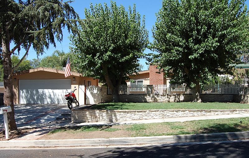 Great pool home located on a tree lined street in an established neighborhood. This 5 bed 2 bath home has a newer roof, newer windows, newer garage door, and central air and heat. The high beamed ceilings and cozy brick fireplace in the living room add charm to this well maintained and upgraded Bonelli home. The kitchen, which is open to the dining area and living room, features travertine flooring, granite and butcher block counters, stainless double drawer dishwasher, 5-burner gas range, and stainless range hood. You'll find hardwood flooring in the living room, hallway, and 1st bedroom. Other 4 bedrooms have neutral carpet. Bathrooms have been tastefully upgraded with travertine flooring, newer sinks, and re-tiled shower/bath enclosures. This is a Standard Sale and there is no Mello Roos or HOA. Close to community parks and distinguished schools.