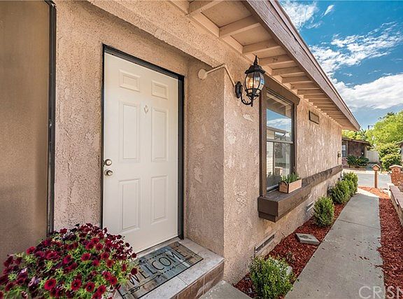 LARGEST MODEL in the Stonegate development. Detached one story home, split floor plan with over 1,500 square feet of living space, master bedroom on one side for privacy, and two secondary bedrooms on other side of home. This home features a new roof, new interior & exterior paint, new flooring, new kitchen cabinets with quartz counters, new stainless steel appliances & double stainless steel sink. Both bathrooms have new vanity sinks with quartz counter tops & new fixtures. Master bathroom has newly tiled shower and separate soaking tub along with a bi-fold shuttered door that leads to a spacious closet. This home has a spacious indoor laundry room and attached two car garage. Outside is a good sized private yard with covered patio deck, automatic sprinklers, new fence, sod in front, seed and fertilized rear yard. This community features a pool, park, play area, clubhouse and paved gated RV parking (RV parking as available at a very low fee)! Low HOA fees of $143. per month. Close to Castaic Lake for boating and fishing. Restaurants and 5 freeway access within minutes of property.