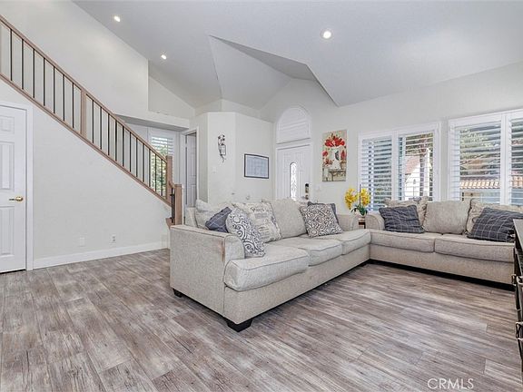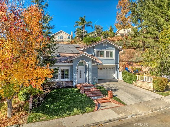 Stroll down to the end of the cul-de-sac, and take a look at this tastefully updated Saugus Canyon home! Gorgeous, light-toned LVP flooring throughout the first level complements the natural sunlight shining through the front windows of the living room. Head through to the large, open concept kitchen with dining space and plenty of room for gathering your friends and family. Updated shaker cabinets and quartz countertops, lots of storage space, included smart fridge, Viking range, and Zephyr wine fridge! The staircase is emphasized by metal railing and solid, real-wood banister. The primary bedroom boasts plenty of space, with large windows and honeycomb blinds. The fully updated on-suite bathroom includes a large shower, dual vanity, and lots of light. All three additional bedrooms are fairly spacious, and share a fully updated bathroom with the same gorgeous finishings as the primary bathroom. The 16,000+ sqft lot offers a spacious backyard with patio space, fruit trees, and HOA maintained hillside, and a private hot tub. Wait, there's more! Ring doorbell, Nest, and Rachio smart sprinkler system are all included! More, still? Yes! Newer HVAC, tankless water heater, updated windows with shutters! Let's keep going! New roof installed in 2024 and OWNED SOLAR panels make this home ready for many, many years to come! Last, but not least, low HOA and NO Mello-Roos! Welcome to Kevin Place!