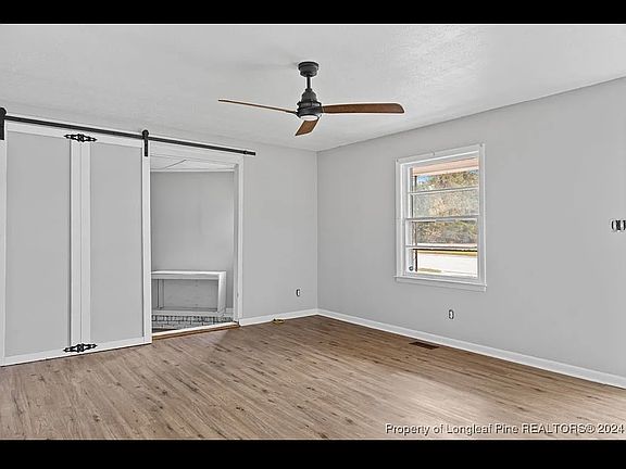 This home is a charming ranch-style home. This single-family residence offers 4 bedrooms, 1.5 bathrooms, and spans 1,346 square feet on a 10,454-square-foot lot. The interior features vinyl plank flooring throughout, stylish new vanities in the bathrooms, and custom barn doors that add privacy to a spacious bonus room. The property includes an attached carport and a fenced backyard, making it ideal for pets or outdoor activities. Conveniently located, it's just 15 minutes from Fort Liberty, downtown Fayetteville, shopping centers, Segra Stadium, and I-95.