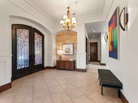 Outdoor living includes a built-in BBQ, spacious patio areas, and a custom water feature surrounded by by desert landscaping. Residents also enjoy Entrada's private clubhouse, resort-style pools, fitness, tennis, pickleball, and dining. A truly one-of-a-kind property offering privacy, architecture, and lifestyle.