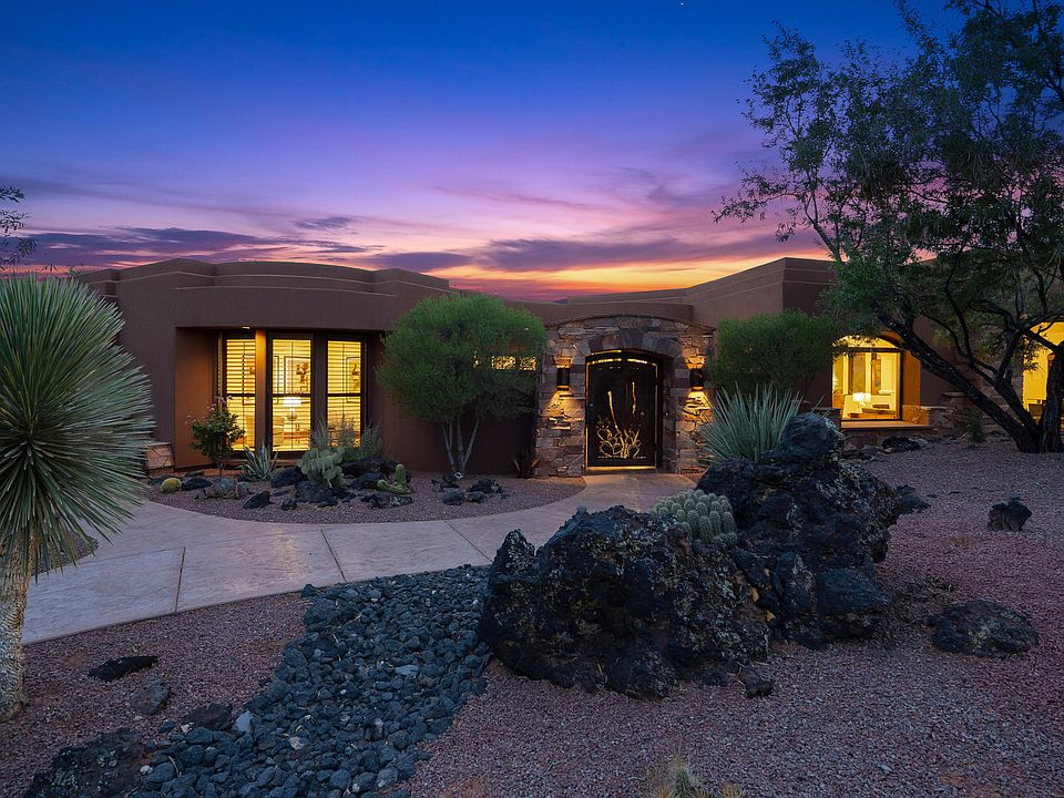Set on nearly an acre, this mid-century modern inspired home offers privacy, elegance, and breathtaking views of Southern Utah's red rock landscape. Located on Chaco Trail in Entrada, the residence enjoys direct proximity to the community's world-class private golf course, host to PGA and LPGA events.