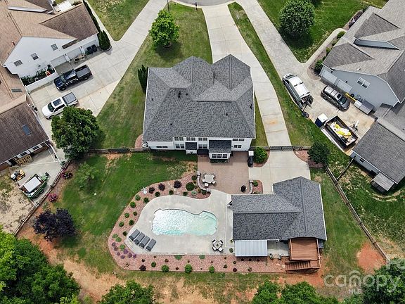 Beautifully maintained 5 BR, 2.5-bath home on almost an acre! Bright & spacious interior w/grand, two-story ceilings on main. Open-concept layout flows effortlessly into the kitchen & breakfast area while maintaing a formal dining room & front room for office/playroom. Additional flex room & half bath on main. Primary suite & four additional bedrooms upstairs w/newer carpet (2020). Brand new Roof & HVACs (2025) for peace of mind! The true showstopper lies outside w/your own private resort-style backyard complete with an in-ground saltwater pool w/LED lights, grand pavilion, expansive patio & tranquil wooded views. Whether hosting or relaxing by the pool, this space is designed for unforgettable moments! Detached garage/workshop & beautiful landscaping throughout. Clubhouse, pool, playground, tennis, basketball courts, walking trails &tons of shops nearby along with Indian Land schools! This home feels like it's out in the country while in the heart of a great community! MUST SEE!!