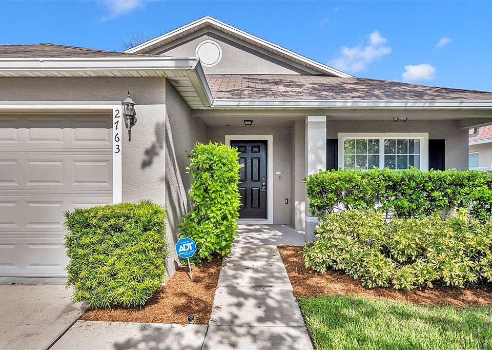 This beautiful block constructed home is located in very liveable STERLING MEADOWS. The large eat-in kitchen features ample counter-space, a closet pantry, and room for a dinette near the front window. The kitchen overlooks a spacious great room - the perfect space for entertaining or relaxing with family and friends! In the rear is a screened-in patio. In the primary bedroom is a large walk-in closet providing plenty of room for storage. On the other side of the house, is a hallway that leads to two (2) additional bedrooms and a 2nd bathroom, as well as an inside laundry room. The house includes a new electric water heater and is move-in ready. Sterling Meadows is located close to shopping, schools, the Sanford Airport, is close to historic downtown Sanford and I-4 or the 417 for commuting.