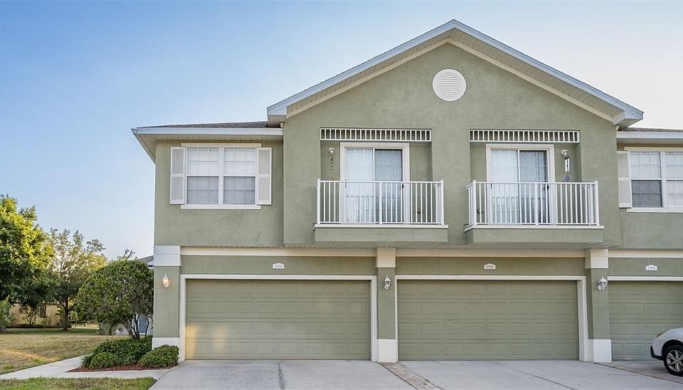 Nestled in the heart of sought-after Wesley Chapel in Pasco County, Florida, this charming, one owner, meticulously maintained townhome awaits. Upon entering the main living space, prepare to be enchanted by the stunning wood look tile flooring that guides you towards a spacious arched alcove, perfect for your entertainment center. Adjacent to the great room, discover a cozy dining area conveniently positioned next to the kitchen. The kitchen features wood cabinets, beautiful solid surface countertops, and a generous walk-in pantry. Completing the main floor, you’ll find a convenient half bath, linen closet, and laundry room, all leading to an oversized two-car garage. Ascend the stairs and down the hall to uncover two bedrooms and a full bath, culminating in a generous master suite. The master bath boasts tasteful tile work, double sinks, a solid surface countertop, and large soaking tub, complemented by a spacious walk-in closet. Outside, the driveway provides ample space for up to two additional vehicles, perfect for entertaining guests. The complex boasts a sparkling pool, perfect for residents to enjoy leisurely swims and relaxation. Virtual tour is a 360 walk through tour. It's almost as good as seeing it in person. Don't miss out!