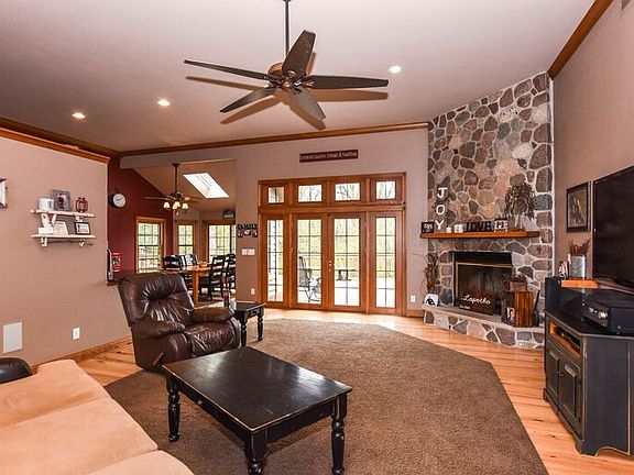 10 acres of true paradise that everybody can enjoy. You are completely removed in a wilderness setting however conveniently minutes away from the town & village. You can fish, hunt, swim, Atv, Snowmobile and play throughout. A well-maintained and meticulously taken care of spilt ranch. The living room has floor to ceiling windows/transoms with Hickory flooring. Walk out onto your extensive deck that wraps around the entire back of the home. Red Cedar Finished Wet Bar and Rec-Room, 1-of its kind-Stunning. Attention to detail at its finest. LockerRoom/Laundry Room built in Barnwood.