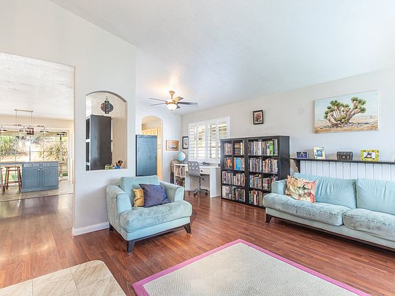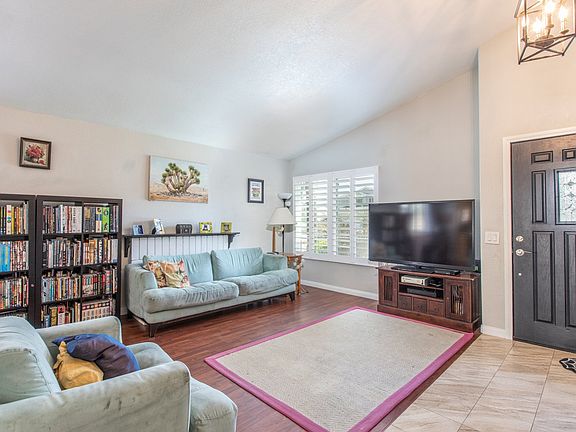 Sugar and spice and everything nice can be found in this 4-bedroom, 2-bathroom, 1,520-sqft home on Saffron Lane in Santa Clarita! Wonderfully high ceilings, recessed lights, plantation shutters, and laminate floors can be found throughout the spacious living room and adjoining office area. By way of the spacious dining room, the bright kitchen comes equipped with stainless-steel appliances, stone counters, tile backsplash, plenty of cabinetry, and kitchen island. Each bedroom includes great built-in closet storage with the primary bedroom featuring an attached bathroom complete with dual sinks and access to a multipurpose guest room. Out to the backyard, a wonderful, covered patio space with overhead ceiling fan provides a great outdoor space for any gathering. Enhanced to last, this great home includes a solar system. As part of an HOA Community, you're provide with wonderful amenities such as community pools, playgrounds, tennis courts, and much more. Minutes from Saugus High School, Albertsons, Hyssop Park, easy 14 Freeway access, and plenty more that beautiful Santa Clarita has to offer!