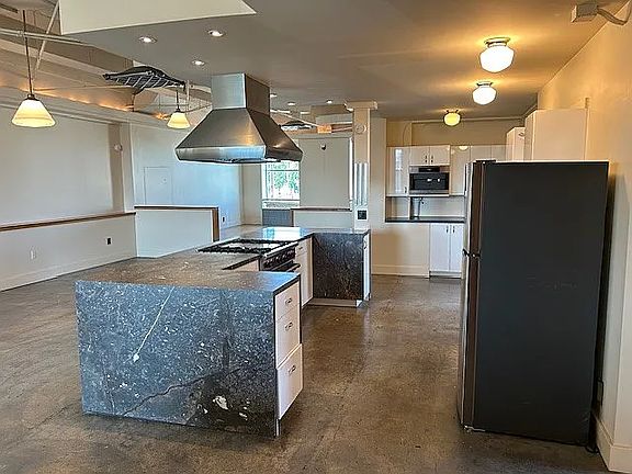 Welcome to this reimagined and unique urban studio unit. Once part of the former bank building, this is the only residential space in this mixed-use commercial building - it's pet-friendly and is located in the SODO neighborhood. Situated on the 2nd floor, this suite has an open floor plan and is very close to the downtown core (and the stadium district and Ferry Terminal). The kitchen features all SS appliances - Wolf range (with large hood), built-in Miele coffee machine and a commercial grade sink. A rare feature to this space is an enclosed movie/tv room with a built-in couch (located in the former bank vault). There is pin code access to the building and a keyless entry lock to the unit. This suite also has designated parking spaces (south side of the property).