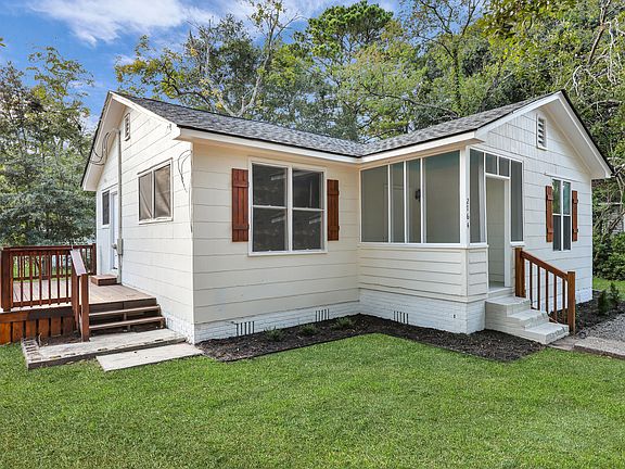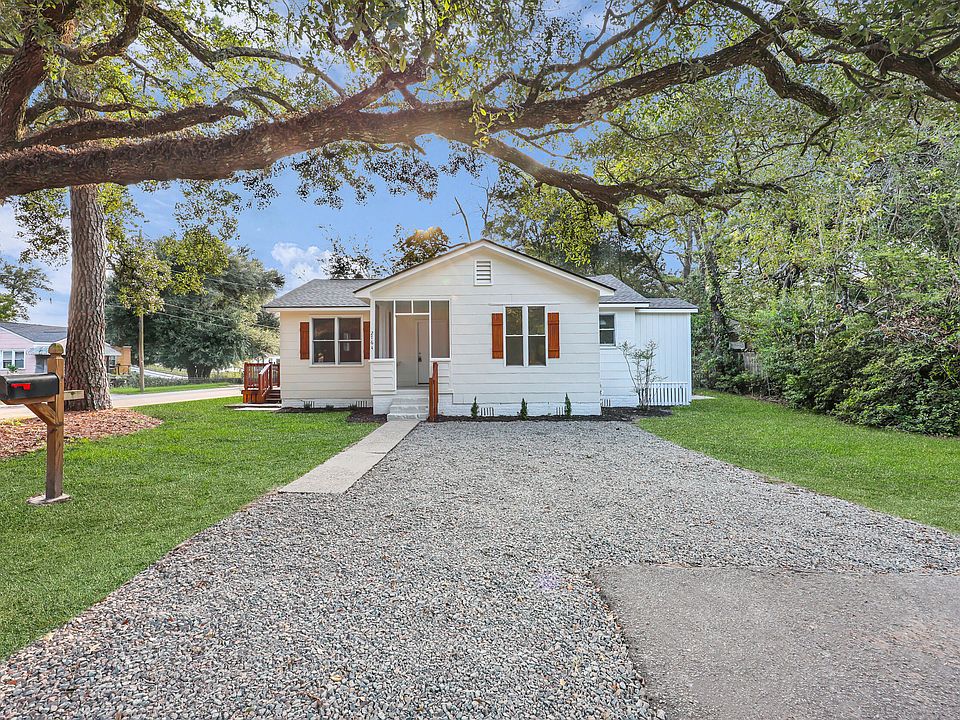 Welcome to 2764 E Surrey Dr, a thoughtfully updated 4 bedroom, 2 bath home on a spacious corner lot in Dorchester Terrace. Great for owner occupants and investors both - rented for $2,300/mo BEFORE the recent renovations.Curb appeal shines with fresh exterior paint, new wood shutters, updated landscaping with mulch and bushes, and a stately live oak out front. A screened-in front porch and freshly stained side deck extend the living space outdoors, while the brand-new stone driveway offers plenty of off-street parking.Step inside to find a rare open layout for the neighborhood. A bright and inviting living room with abundant windows flows into the dining room, creating the perfect space for gathering.The kitchen has been fully refreshed with painted black cabinets, butcher block counters, white appliances, modern black stone-look tile floors, and a crisp tile backsplash. The home offers four bedrooms, including a large room off the living area with porch access that can serve as a primary suite. Another bedroom near the entry makes an ideal office or guest space, while the hall bedrooms include features like built-in shelving and ample closet storage. Both bathrooms have been updated one with new tile, vanity, and fixtures, and the other with refreshed finishes and hardware. Refinished hardwood floors run throughout much of the home, complemented by new and updated lighting, fans, and fresh paint. Recent upgrades provide peace of mind: a brand-new roof, stove, and dishwasher (2025), HVAC and refrigerator (2021), new water heater, insulation, and updated plumbing and electrical. Conveniently located just minutes from Park Circle, Downtown Charleston, and area beaches, with easy access to I-26 and I-526, this home combines modern updates, flexible living space, and an excellent location - all at a price point that's hard to find in today's market.