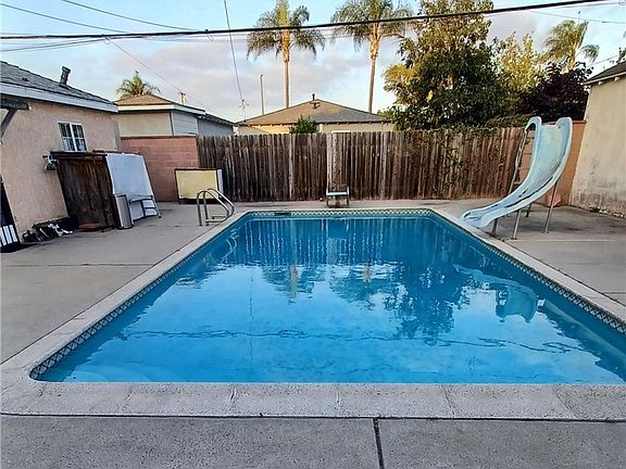 This cozy 3 bedroom 1 bath single family POOL home, in need of a bit of cosmetic TLC, is nestled in a quaint and quiet Westside area of Long Beach. This location provides easy access to the 405 and 710 freeways. Functional 2-car detached garage with 3/4 bath, separate water heater, and kitchenette--pool house anyone?. No stove/range in the garage. Newer (2024) composition shingle roof on house and garage. Detached 2-car garage, finished. Long, generous multi-car concrete driveway. Cinder-block and wood fencing surrounds the sides and back of the property. Front yard is ready for your green thumb. Newer laminate flooring in living room and one bedroom, and hardwood in the other two bedrooms. Security bars on all windows. Existing HVAC has not been used recently. Pool (approx. 14' x 30') is maintained weekly and has newer pump. Remainder of the back yard is concreted over--easy care--no green thumb required! Some copper plumbing. Stove and refrigerator included. New water heater.