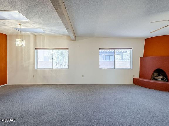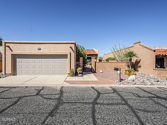 Backing to natural desert, this charming updated home in Desert Hills 5 offers multiple private outdoor living areas where you'll enjoy sun or shade at all times of the day, glimpses of the Santa Rita Mountains from the gated front courtyard, and the Catalina Mountains to the North from backyard viewing decks.Interior features include an expansive great room with options for multiple seating areas, whether cozying up around the colorful beehive fireplace, watching TV, or by creating a more formal dining space for entertaining. Spacious kitchen with casual dining area and center island, newer luxury vinyl plank floors, newer refrigerator and dishwasher (2023), reverse osmosis, and updated sink, faucets, disposal, and nearby laundry closet.Walk out from the Great room and owners suit suite to an expansive Arizona Room for additional living, hobby or entertaining space. Two generous sized bedrooms with plenty of natural light, and 2 full baths. Out back you'll be entertained by the neighboring wildlife, expansive desert view and incredible night sky.