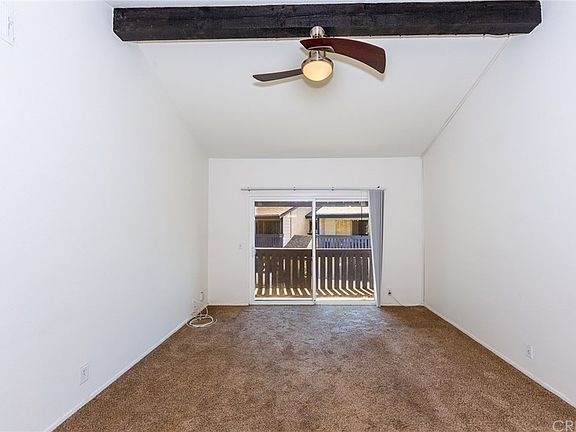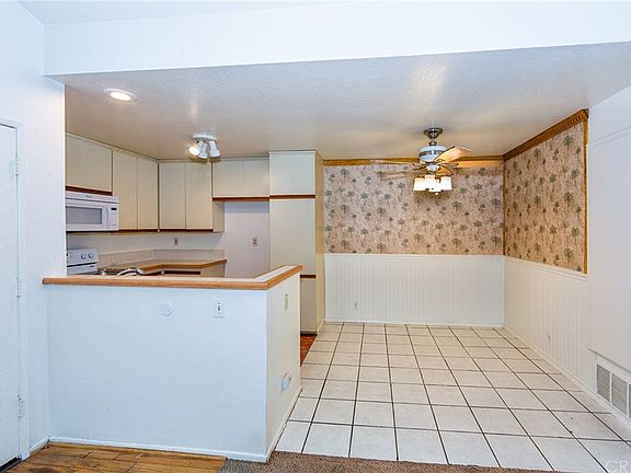 Upper two bedroom condo in Saugus is walking distance to shopping center. Enter into the living room with vaulted ceilings and a sliding glass door to a balcony. The kitchen has ceramic tile flooring and tile counter tops. Kitchen appliances include: stove, dishwasher and microwave. The dining area opens to the living room and has ceramic tile flooring, a ceiling fan and wainscot molding. Guest bedroom with vertical blinds. The master bedroom has a ceiling fan, a walk in closet and a vanity area with a door to the shared full bathroom. The laundry closet in the hallway has a stackable washer and dryer. This unit has two covered carport spaces. Enjoy the HOA pool and spa.