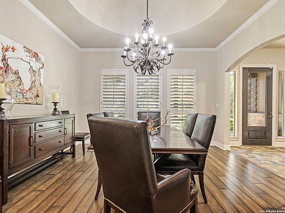 Exceptional Hill Country Living with Privacy, Luxury, and Timeless Charm Nestled in the highly sought-after Village Green community, this beautiful residence offers nearly 4,000 square feet of thoughtfully designed living space on a lush, tree-filled half-acre lot that backs to a serene greenbelt. Surrounded by mature oaks and enhanced by extensive updates and improvements, this home captures the perfect balance of comfort, elegance, and functionality. Highlights & Features Outdoor Oasis Private greenbelt lot with mature oak trees for exceptional privacy Resort-style pool with turtle shelf and waterfall feature Expansive patio and new sun deck area - perfect for outdoor entertaining Mosquito misting system and backyard audio system for added comfort and enjoyment Detached storage building remains with the property Interior Excellence Open-concept floor plan ideal for everyday living and entertaining Tall, vaulted ceilings and custom built-in cabinetry in the living area Elegant rotunda ceilings in the foyer and dining room Plantation shutters throughout Seamless flow between kitchen, breakfast area, and living space. Gourmet Kitchen Large center island with abundant storage and seating Gas cooktop and stainless-steel appliances Oversized pantry and extensive custom cabinetry Recently added sliding glass doors and picture window fill the home with natural light and create a true indoor-outdoor connection Private Primary Retreat Expansive primary suite with private access to the backyard and pool Spa-inspired bath with walk-in shower, soaking tub, and dual vanities Generous walk-in closet with custom organization Upstairs Addition New guest suite with private bath Media room with large drop-down movie screen - ideal for family nights or entertaining Additional bathroom and flexible space for guests or hobbies Additional Features Tankless water heater Reverse osmosis system and water softener Three-car garage with epoxy flooring and built-in storage Laundry room with sink, desk area, and secondary entrance from the driveway Key Details 5 Bedrooms | 5 Baths Approx. 3,969 SQFT Over Half-Acre Lot Extensive Home Improvements & Upgrades Village Green Community - Convenient to Downtown Boerne and I-10 Investment in Quality More than $160,000 in recent upgrades and improvements, including flooring, lighting, additions, pool enhancements, outdoor features, and mechanical systems - ensuring comfort, efficiency, and lasting value