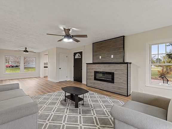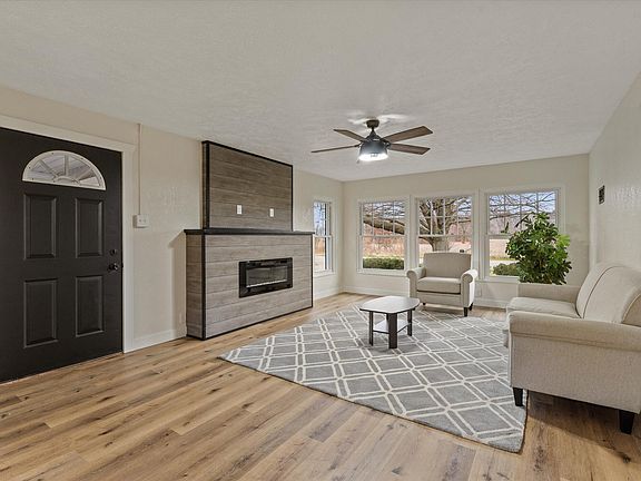 New electric fireplaceOversized yardBeautiful metal roofNew doorsNew garage doorsNew floorsNew gutters