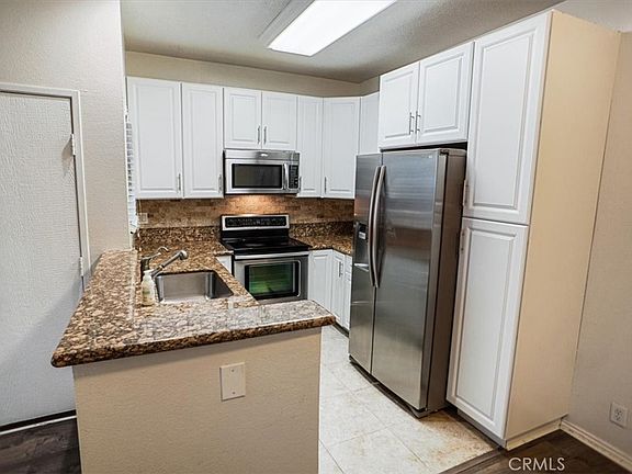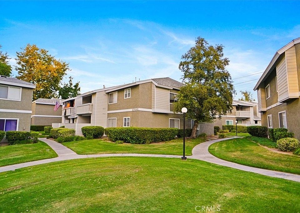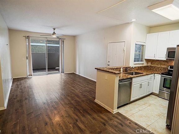 Welcome to this beautiful, upgraded 2-bedroom, 2-bathroom lower unit in the New Horizons community! The home boasts a modern kitchen with granite countertops and stainless steel appliances, including a microwave, stove, dishwasher, and refrigerator. Enjoy meals in the cozy dining area and unwind in the spacious living room, complete with a ceiling fan. Step outside to a large private patio with additional storage. This unit also offers the convenience of an in-unit washer/dryer tucked into the hallway. The hallway bathroom features a shower/tub combo and an upgraded vanity, while both bedrooms include ceiling fans. The primary bedroom includes an attached bath with a walk-in shower and an upgraded vanity. The community provides access to a pool and spa, perfect for relaxation. Conveniently located near shopping centers, restaurants, parks, and schools, this home offers comfort and convenience at every turn! Low HOA!
