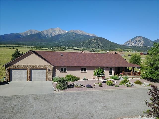 Beautiful custom home with mountain views and a great floorplan! Open living design with huge kitchen that opens onto the Dining and beautiful Great Room with great views. Large Master Bedroom with added sunroom staring right at Mt Princeton and the other surrounding mountains. Walled large courtyard with hot tub hook ups and beautifully landscaped with a drip system. Oversized garage for your workshop!