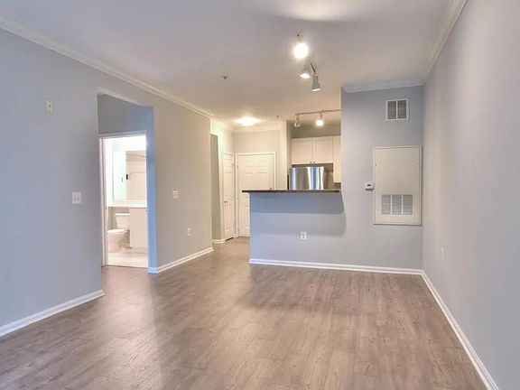 Modern, well-kept 1BR/1BA condo in the highly desired Marquis at Vienna Station, just across the street from the Vienna/Fairfax-GMU Metro (Orange Line). This ground-level unit overlooks the interior courtyard and features an open layout, hardwood-style flooring, neutral paint, a fully equipped kitchen with breakfast bar, spacious bedroom, large bath with soaking tub, and in-unit washer/dryer.