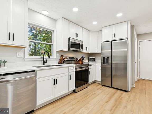 This fantastic Waldorf home sits beautifully on 1 full gorgeous acre and is conveniently located close to schools, restaurants, shopping and commuter routes! This home showcases modern upgrades with peaceful living. A tastefully decorated farmhouse style to include 4-bedroom, 3.5-bath with a fully finished basement. Greeted by an inviting front porch perfect for enjoying more coffee. Inside, you’ll extensive stunning upgrades that include new flooring throughout, stylish black hardware and lighting, sleek quartz countertops, newer kitchen cabinets, and stainless-steel appliances. The spacious family room features a cozy wood-burning brick fireplace, perfect for family gatherings. The finished basement offers even more living space with a fourth bedroom, full bathroom, and a large recreation room. The two-car garage with brand new garage doors provides plenty of room for parking or storage. The huge fenced in backyard is sure to impress! Additional updates include a new water heater (2023), HVAC system (2018), and roof (2010). This home combines modern upgrades with a winning location that is close to everything, yet a huge peaceful 1-acre lot making this a true Waldorf GEM!