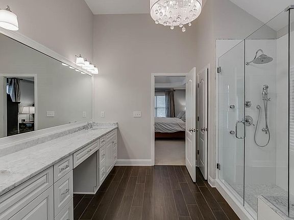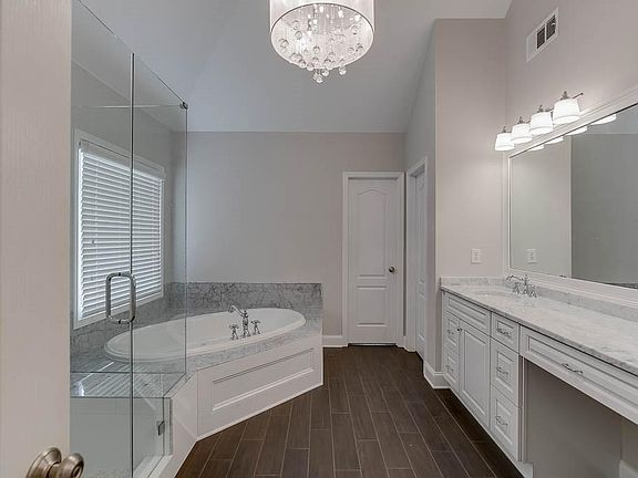 Stunning 5 bed/ 4 bath in sought after Estates at Ivy Creek! Home features grand 2-story foyer and living room, formal dining room, den, and a bedroom with full bath on main level. Kitchen includes granite countertops, gas cook top and eat in area that opens into the spacious living room. Upstairs boasts RENOVATED Master Bath with ALL NEW: white cabinets, marble counter tops, sinks, HEATED porcelain tile floors, and a separate jett tub and tile shower with rain head fixture. Enjoy the large fully fenced backyard from the lower patio!