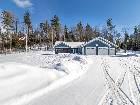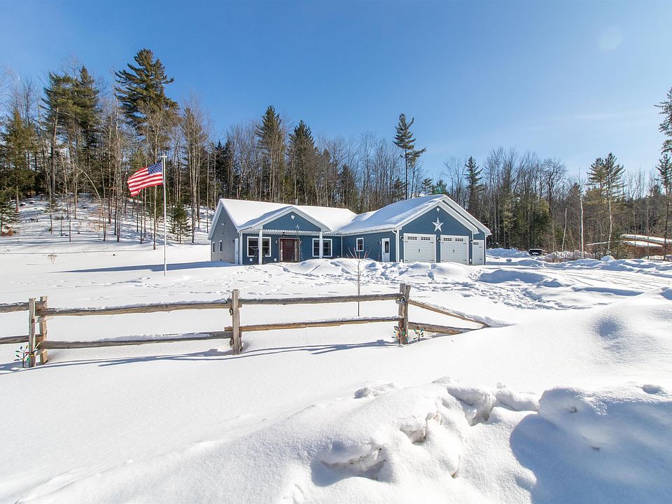 Meticulously maintained newer 3-bedroom ranch set on 29 private acres. This 2-bath home offers an open-concept layout with a spacious kitchen featuring a large island and an inviting living area centered around a Hearthstone wood stove, perfect for cozy evenings. The primary suite includes a walk-in closet and a private bath. The property includes appliances and most furniture, making it turnkey. The property consists of an attached 2+ car garage with a third bay ideal for smaller toys or equipment, plus a detached garage and a woodshed conveniently located a short distance from the home. There is also dry storage above the attached garage. Enjoy an extensive trail network throughout the land, perfect for snowshoeing, hiking, and cross-country skiing, with easy access to the VAST trail system for snowmobiling. Jay Peak Ski & Resort is nearby, making this an exceptional four-season Vermont retreat offering comfort, and recreation.