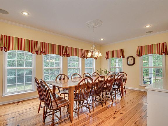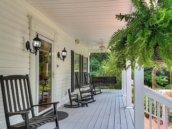 The picturesque, rocking chair front porch, adorned with hanging ferns, provides stunning sunset views. The mature native perennials, blueberry bushes, and muscadine vines add to the charm. Inside, the spacious living areas are bathed in natural light, highlighting the eye-catching heart of pine flooring throughout.