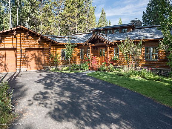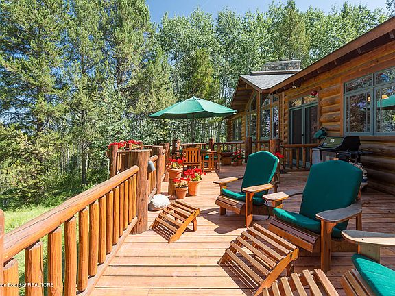 A quintessential, custom log home in a gorgeous, forested setting is now available. This incredibly charming home has the master suite on the main floor with 2 guest bedrooms and baths on the lower level. There is a cozy additional living area that opens up to the lovely, private yard which is contiguous to open space and a direct access to the National Forest , where one can hike or x-country ski . The lower level also has a large studio perfect for an artist or craftsman. A wine cellar and sauna are additional amenities . A 900 sq.ft. back deck is perfect for viewing the wildlife meandering by and there is a view of the Grand . A large storage area below is well suited for stowing all your JH toys.