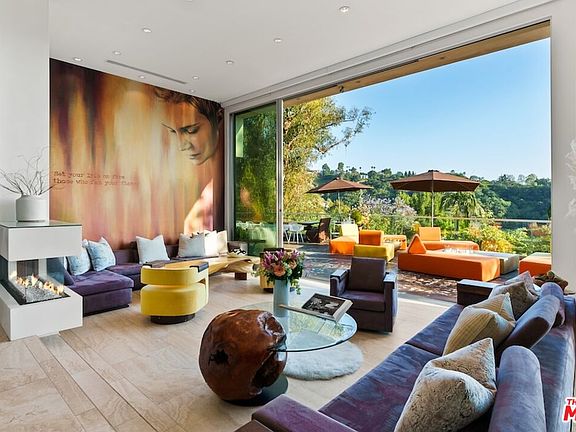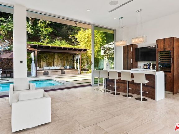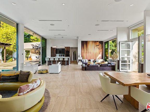 Welcome to the ZEN Estate - a serene, modern sanctuary nestled in the prestigious hills of Beverly Hills. This fully furnished, single-story 5 bed, 6 bath masterpiece is available for both short and long-term rentals, offering a seamless blend of luxury, nature, and tranquility. Beyond its secure gated motor court lies a lush, landscaped oasis. Step inside to an expansive open-concept layout with soaring 16-foot ceilings and floor-to-ceiling Fleetwood glass doors, flooding the space with natural light and connecting effortlessly to the outdoors. Neutral, earthy tones throughout create a peaceful, refined ambiance. The home features two elegant indoor fireplaces, a formal dining area, chic wet bar, and a chef's kitchen with double waterfall islands and premium appliances including a Wolf range, Sub-Zero wine cooler, and Miele refrigerator. At its heart is a stunning 3,000 sq ft front deck with multiple fire pits and panoramic canyon views - ideal for alfresco gatherings. Slide open the glass walls to reveal a resort-style backyard with a temperature-controlled pool, cascading waterfalls, and four of the estate's seven outdoor fireplaces. Cabanas, shaded lounge areas, and a secluded Zen garden with a private BBQ and bar create the ultimate entertaining and relaxation zone. The luxurious primary suite features a triple-sided fireplace, direct garden access, and a spa-like en-suite with soaking tub, oversized rain shower, and dual vanities. Four additional en-suite bedrooms offer stylish comfort for guests. A dedicated meditation and yoga room - also known as the "Think Tank Room" features a skylight for natural illumination, making it an ideal space for mindfulness or creative inspiration. With state-of-the-art smart home tech, sound system, an EV charging station, and advanced security, the Zen Estate delivers privacy, comfort, and sophistication. Just minutes from the Beverly Hills Hotel, Sunset Boulevard, and Rodeo Drive, this exclusive retreat offers the perfect balance of seclusion and city access. Experience Beverly Hills' most coveted haven of calm and luxury.