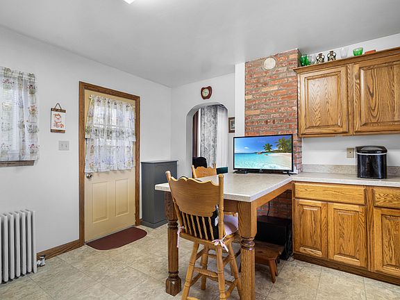 Brand-new roofCustom oak cabinetryCenter islandNewer siding and windowsTwo-tiered deckCharming exposed brickNewer flooring