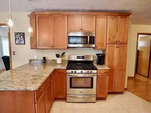 Gas stoveFinished basementRemodeled kitchenHardwood floorsGranite countertopsStainless appliances
