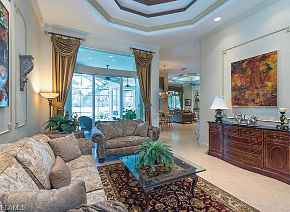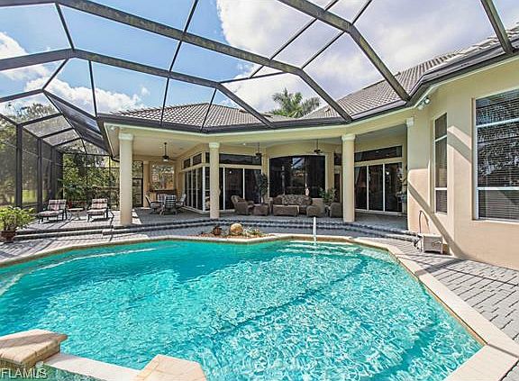 Location, location, unmatched views of the lake, golf course and preserve offers total privacy. Attention to detail abounds in this spacious 3 bed, 4 bath home with elegant living room, formal dining room, designer coffered ceilings throughout and custom moldings. The gourmet kitchen with breakfast nook,granite counter tops, Advantium "Speed cook" oven and top of the line appliances is a chef's dream. Enjoy the casual family room with wet-bar, gas fireplace, custom wall-to-wall built-ins and superior Bose sound system throughout. Glass recessed patio doors leading to a casual lanai with heated pool and spa with Aqua Link system and new summer kitchen with gas grill offers Florida living at its best. A large master suite has his and her custom closets and impressive bath. Elegant den with double door entry, beautiful built-in maple cabinetry, high speed internet and cherry wood floors is ideal office or library. This home is meticulously maintained and a pleasure to show. Owner relocated. Ready to move into.