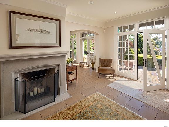 Situated in the heart of Ten Mile Point, this captivating custom residence blends timeless elegance with architectural mastery and the finest materials. Positioned high with views of Cadboro Bay, this .50-acre south-facing estate is the perfect setting for the 5,000+ sq. ft. home, complete with manicured gardens, stone walls, water features and a custom in-ground pool. Designed for seamless indoor–outdoor living, the main floor offers a refined yet relaxed lifestyle, enhanced by the area’s unique microclimate of warmer days & sun-filled evenings. Principal rooms grace the main level, with 4 bedrooms and 3 baths above, and an additional bed & bath below. The sumptuous primary retreat spans its own wing with a spa-inspired bath, fireplace, private sitting area and breathtaking ocean views from your bedside. A grand gourmet kitchen anchors the home with dining-area fireplace, expansive island and direct access to a wisteria-covered heated deck, expansive terraces and tranquil fountains.