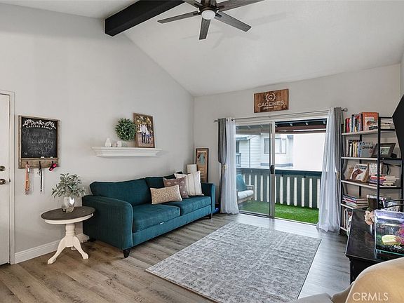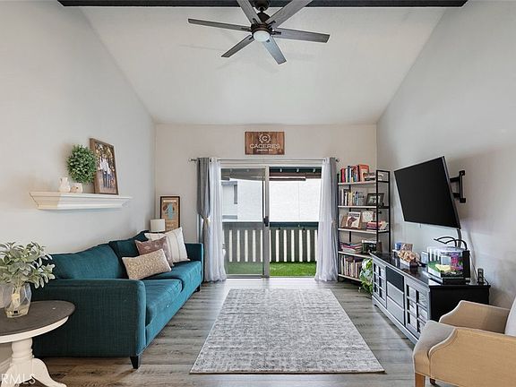 Welcome to Home! This remodeled two bedroom, one bathroom condo in Saugus is FHA & VA Approved, with low HOA Dues and NO Mello Roos!! Walk into the welcoming living room with high wood-beamed ceilings, and large sliding glass doors that bathe the home in natural light and provide peaceful views of the exterior landscape. Kitchen is open to the Living room and upgraded with newer cabinets and quartz counter tops. The hallway leads you to the indoor laundry with new stackable washer and dryer INCLUDED! The 1st bedroom has custom closet insert to maximize space. Master bedroom is also generous in size and features a walk-in closet with a custom built-in organizer. The Hallway bathroom has a large soaking tub, perfect for relaxation! In addition to the beautiful interior, the area surrounding the condo is filled with green belts, trees, and pool providing a serene break from the city. Trash and water are included in the HOA fees. Additional storage closet located off the patio, AND more storage above the 2 side-by-side parking spaces. Centrally located near shopping, restaurants, schools, and parks, truly a must see!!
